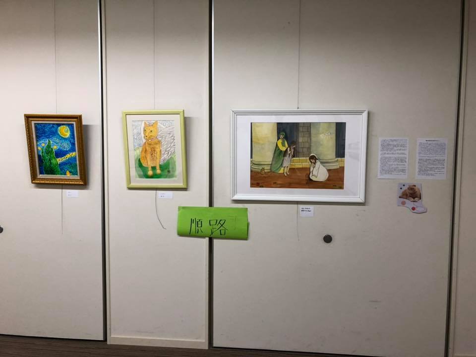 実話と共に愛猫たちへの愛を表現した、宗教画家 加藤(宮本)純子さんの絵と写真、ちょっとダークな優一くん(当時10歳)の猫妖怪作品が感動を呼びました。