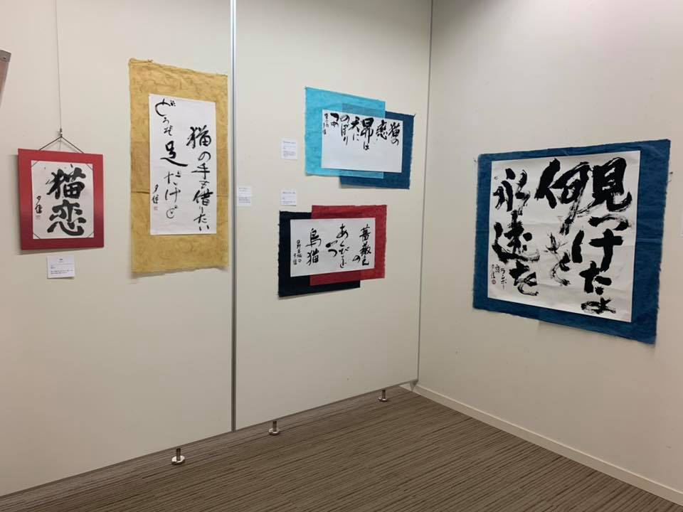 様々な書体の「猫」や、猫俳句、自作の猫川柳など、猫をテーマとする書道作品で、ユニークな展示空間が実現しました。