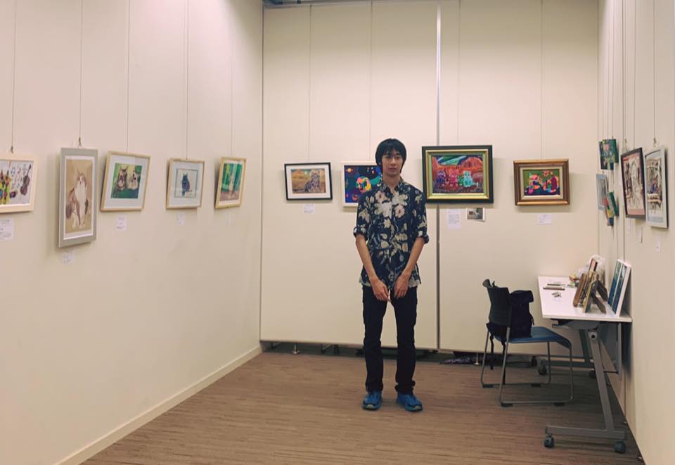 相原陽輝(16)の個展。猫画と自画像のコレクションを発表。アクリル画、パステル画、色鉛筆画、水墨画、キットパス画など、様々な手法による猫の絵を集めました。
